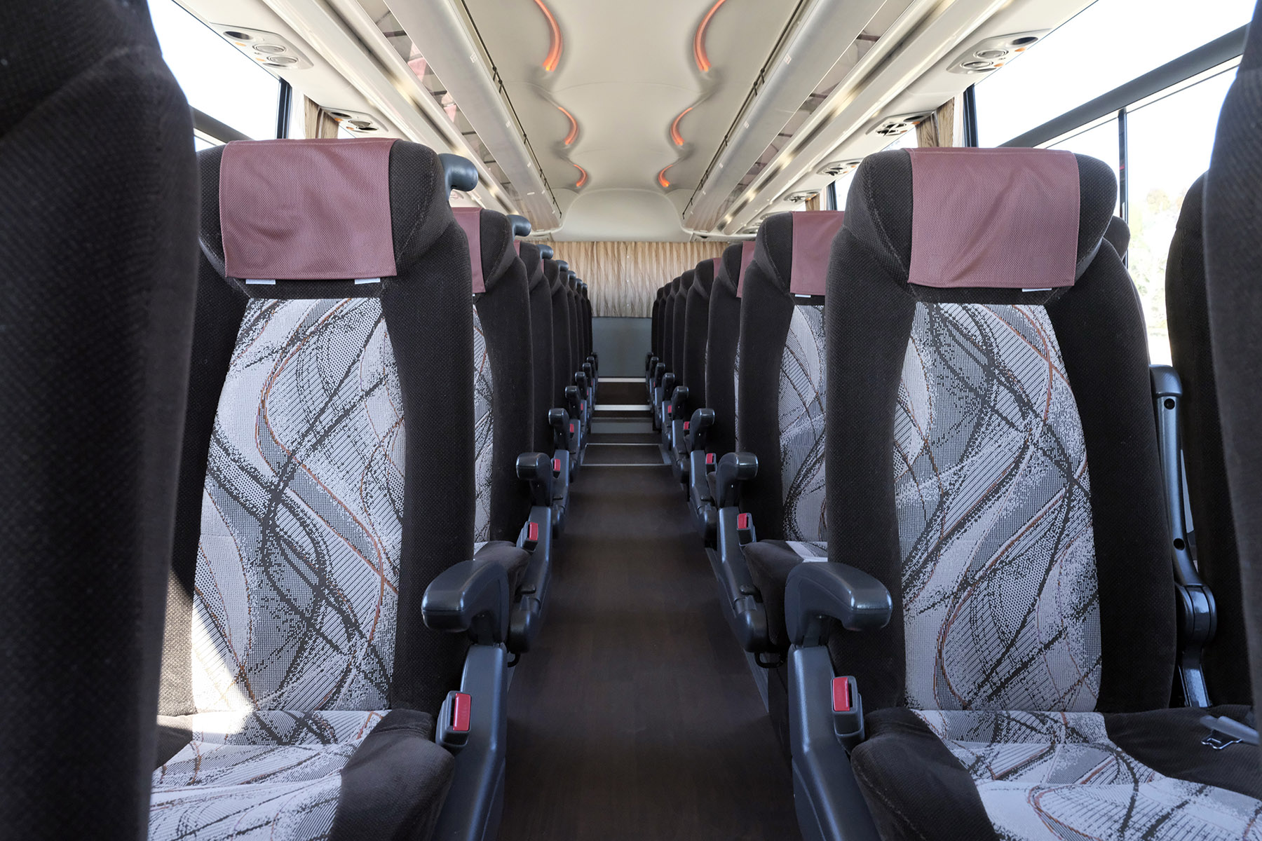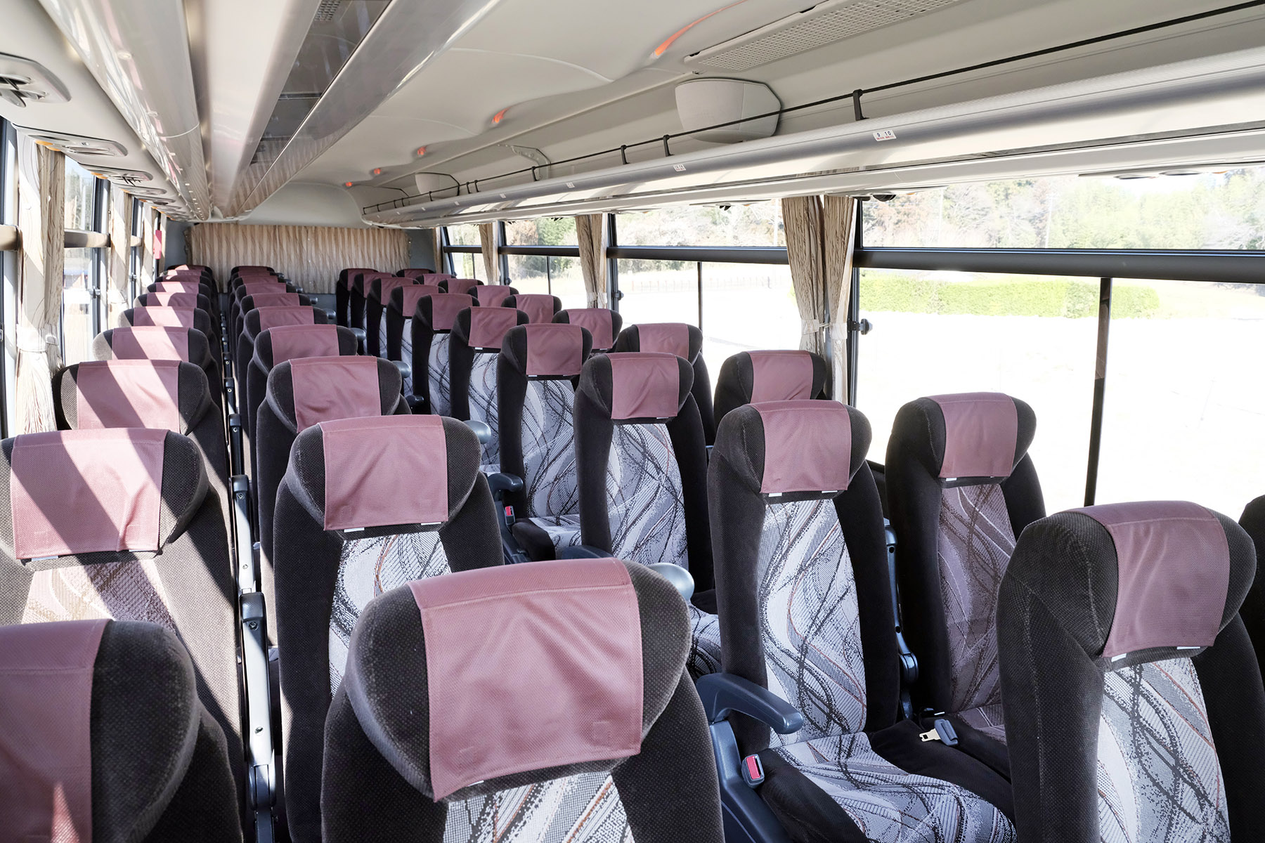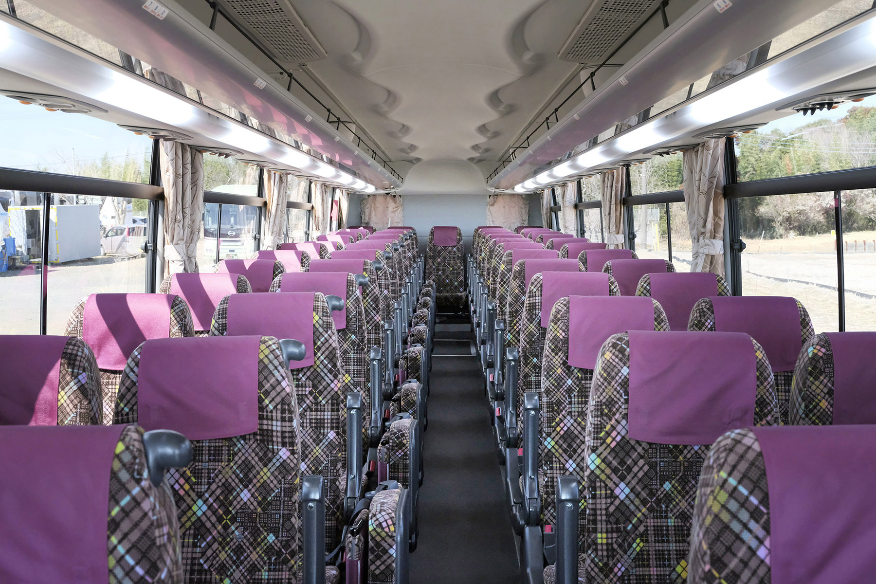 ワイドタイプ バス種別:ワイドタイプ定員:44名(正席:44)有料道路区分:特大車 設備 テレビ / 湯沸器 / 冷蔵庫 / センサーモニター 安全設備 ドライバーモニター / PCS / 電子制御ブレーキ / ABS スタンダードタイプ バス種別:スタンダードタイプ定員:60名(正席:49/補助席:11)有料道路区分:特大車 設備 テレビ / 湯沸器 / 冷蔵庫 / センサーモニター 安全設備 ドライバーモニター / PCS / 電子制御ブレーキ / ABS